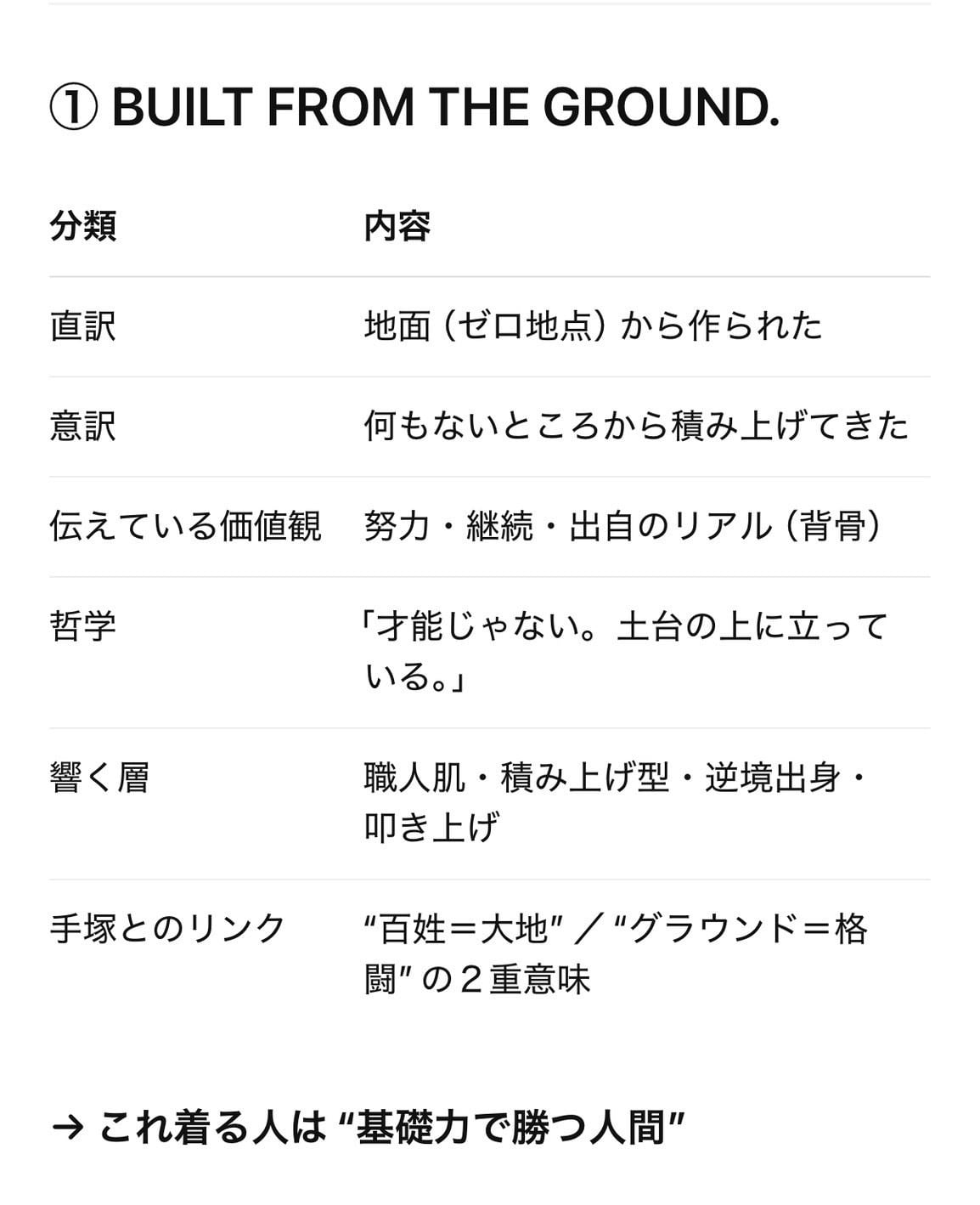 =「ゼロから積み上げてきた人間」。